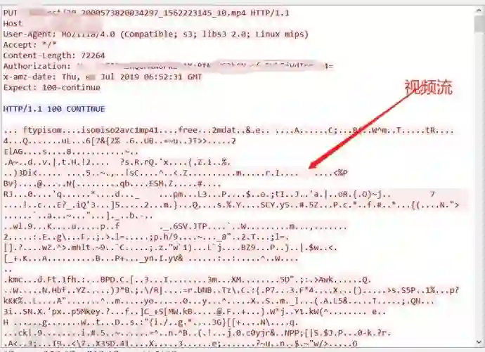 如图很容易看到一些显眼的PUT方法的HTTP的交互请求,经过分析发现该摄像头是通过PUT方法把监控的视频和照片上传到云端。由于未加密,可以很容易提取到监控的照片和视频。