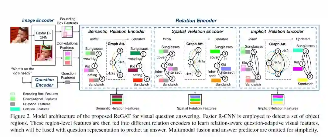 摘要:为了解决图像的语义复杂问题,视觉问答模型需要充分理解图像中的视觉场景,特别是不同对象之间的交互动态。我们提出了一个关系感知图注意网络(ReGAT),它通过图注意机制将每个图像编码成一个图,并建立多类型的对象间关系模型,以学习问题的自适应关系表示。研究了两种类型的视觉对象关系:(1)表示几何位置的显式关系和对象之间的语义交互;(2)捕捉图像区域间隐藏动态的隐式关系。实验表明,ReGAT在VQA2.0和VQA2-CP v2数据集上的性能都优于现有的最新方法。我们进一步证明了ReGAT与现有的VQA体系结构兼容,可以作为一个通用的关系编码器来提高VQA的模型性能。