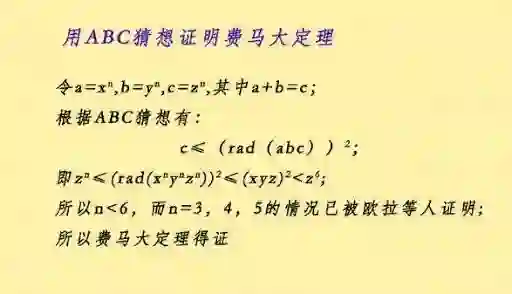 如果这一猜想得到证明,那么数论领域将发生巨大变化,比如为费马大定理的证明提供一种全新的方法。费马大定理是皮埃尔·德·费马在 1637 年提出的一个传奇问题,直到 1995 年才被英国数学家安德鲁·怀尔斯用 200 多页的论文完成了证明。但如果 abc 猜想是成立的,那么他的证明只需下面几行字: