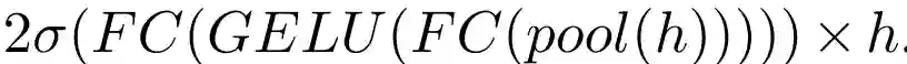 在最后一个 1×1 卷积之后是 Squeeze&Excite 层,它全局平均汇集激活,对汇集的激活应用两个具有交错缩放非线性的线性层,应用一个 sigmoid,然后以这个 sigmoid 值的两倍重新缩放张量通道。具体的,这一层的输出为: