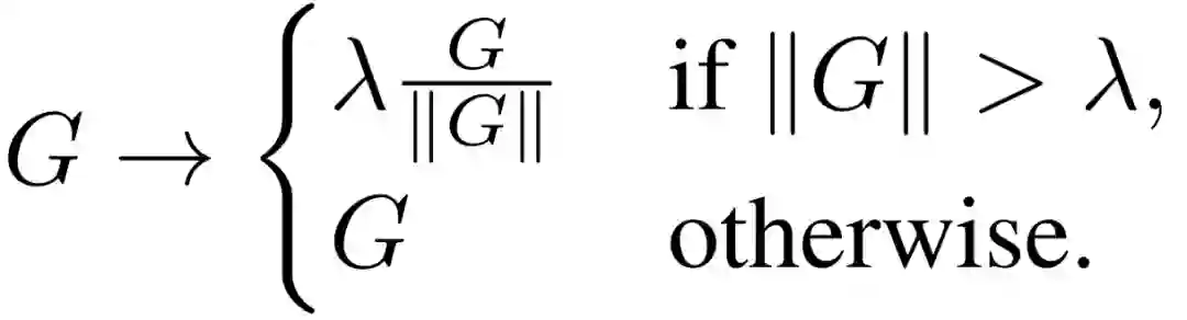 其中,W^l 是 的第 L 层的权重矩阵, G^l 代表 W^l 的梯度。AGC 关键在于:通过观察梯度 G 的范数与层权重 W 的范数之比,以判断单个梯度下降在多大程度上改变原始权重 W 。根据梯度归一与参数归一的单位长度比值来剪辑梯度,作者发现这比采取层间归一比值的经验表现更好。具体来说,在 AGC 算法中,第 l 层 (G_i)^l(定义为矩阵G^l 的第 i 行)的梯度的每个单元 i 被剪切为: