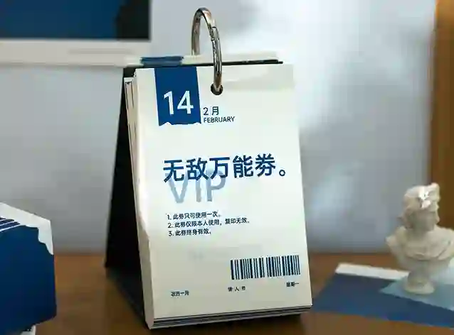 在每个日历页上,都有一个奇妙有趣的玩法。其实用「玩法」这个词很难形容它的精髓。比如 2 月 14 日这一天,情侣之间的小情趣就变成了一张万能无敌券,在这一天就用这张日历页和亲密爱人来一回风月情趣吧。