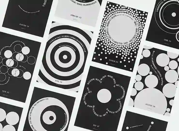 《单向历 2022》有了全新的封面与日历页设计。这一版的封面用了五个不规则气泡造型将整个页面挤满。到了月头页,采用了交叠的圆形、同心的圆形、波点的圆形……各种不同的圆形在黑白配色下凸显层次感,每一张都是设计佳作。
