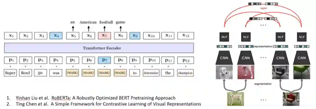 在 NLP 领域,BERT 及其变种的取得了巨大的成功,证明了语言模型作为一个自监督任务,可以帮助训练非常深的 Transformer 模型,以捕捉语言的底层知识,如语法、句法、词义等。