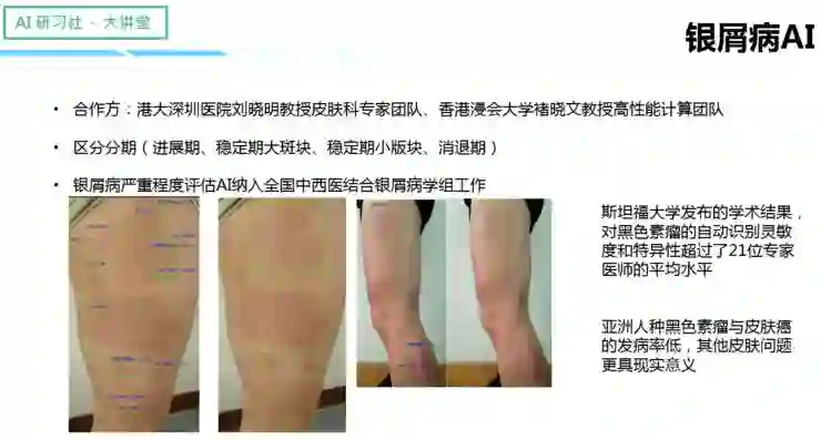 关于皮肤图像分析的案例,我会讲到银屑病 AI、面部皮肤病 AI 以及面部皮肤 AI 副产品,即皱纹斑点等目标检测处理这三个案例。
