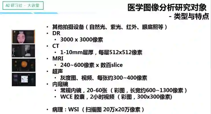 在下图中,我们可以看到医学图像分析的类型以及对应的特点: