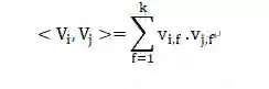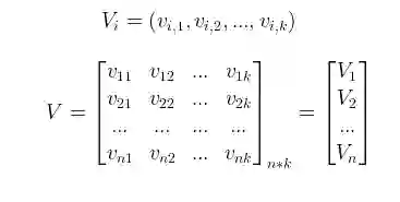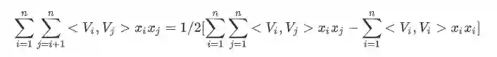 由于直接在交叉项 x_i,x_j 的前面加上交叉系数 w_{ij }的方式,在观察样本中未出现交互的特征分量时,不能对相应的参数进行估计,故文章作者引入了辅助向量V_i=(v_{i1},v_{i2}, ..., v_{ik})利用<V_i,V_j>来对w{i,j}进行估计: