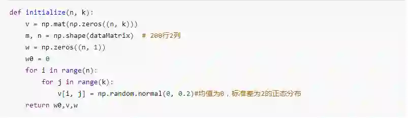 将v按照正态分布进行随机初始化,w与w_0初始化为0。