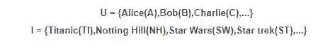下面我们以论文中给的电影评分数据,通过实际的例子来解释为什么FM对于稀疏数据有很好的表现。数据集中每一条记录都包含了哪个用户u在什么时间t对哪部电影i打了多少分r。假定用户集U和电影集I分别为:
