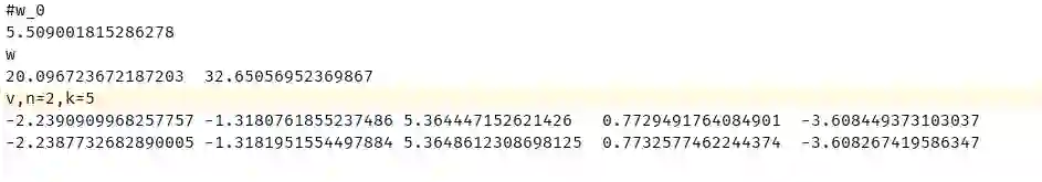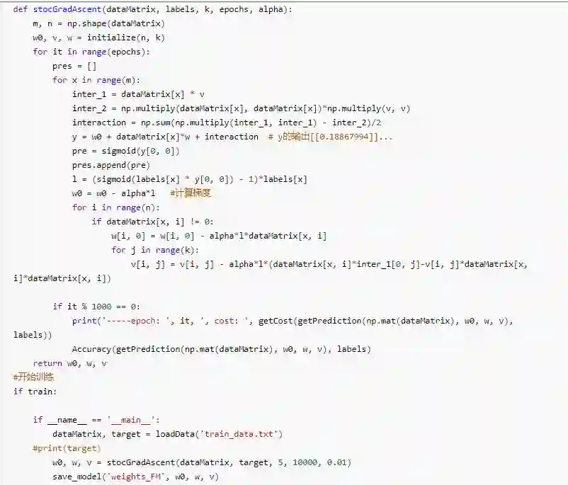 开始训练,并将训练得到的w_0,w,v保存在weight_FM中。