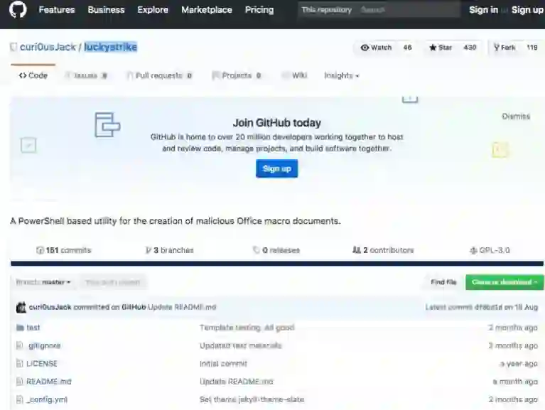 Luckystrike 出自“curi0usJack”之手的Luckystrike,是一款恶意Excel(.xls)和Word(.doc)文档生成工具。Luckystrike可与标准命令行、PowerShell脚本和可执行程序(EXE)配合使用。下载地址: