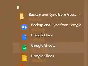 如果你之前安装过例如 Google 云端硬盘套件,那么「Google 推出的备份和同步功能」会在安装后自动对其进行替换,所以如果你和我一样桌面使用的是 Windows ,那么安装完成之后除了「Google 推出的备份和同步功能」之外,还有此前 Google 云端硬盘桌面套件:Google Sheets、Google Slides 以及 Google Docs,这些作为附赠的产品一并打包送上。