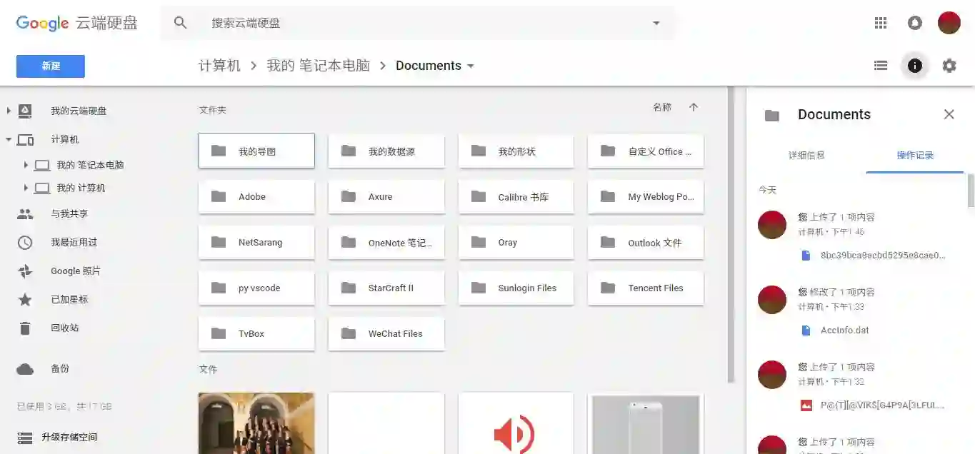 至于如何与查看文件,我个人觉得最合适的方法就是在打开网页版的 Google 云端硬盘,就像是访问其他云存储服务一样查看文件,唯一不同的是已经针对不同设备进行了分类,所以你可以轻松的找到不同设备上传的文件。
