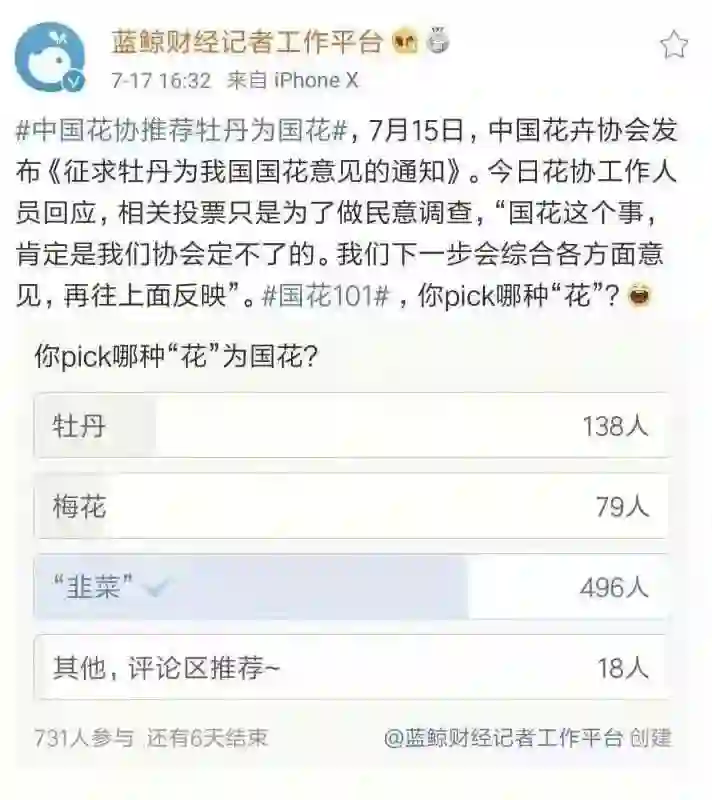 微博上话题热度也是不减,虽说“牡丹”在大众的认可里没有争议,但是出人意料的强势竞争者还是出现了——