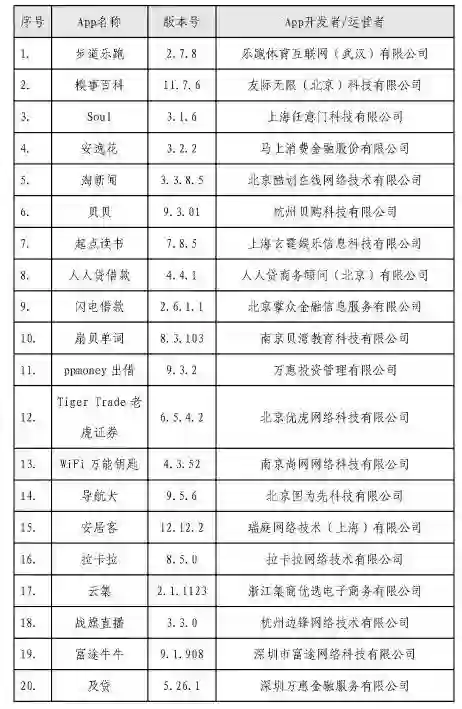 除了“点名”10款存在无隐私政策的APP外,还通报了另外20款存在“设置霸王使用条款”问题的APP——