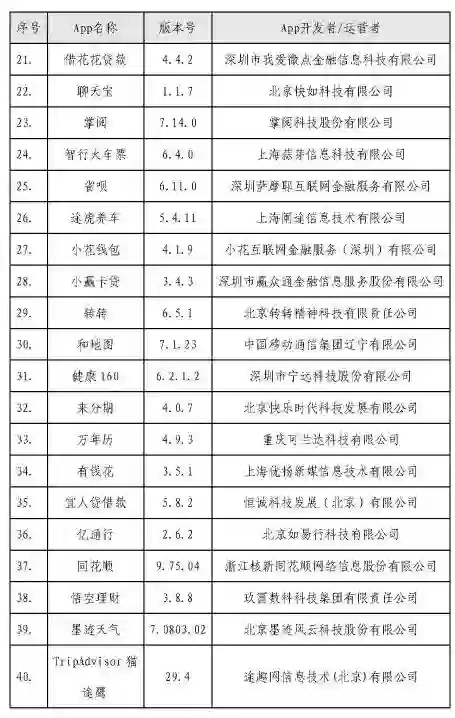 7月16日,由全国信息安全标准化技术委员会、中国消费者协会、中国互联网协会、中国网络空间安全协会成立的App专项治理工作组发布了《关于督促40款存在收集使用个人信息问题的App运营者尽快整改的通知》。
