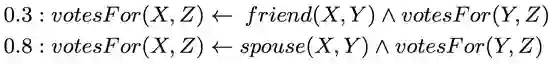在推理过程中,使用了概率软逻辑, 来综合考量各种生成的事实. 其核心思想是: 由谓词和变元组成的命题, 真值不在局限于1或0(真或假), 而是可以在闭区间[0, 1]上取值. 一个简单的例子是: