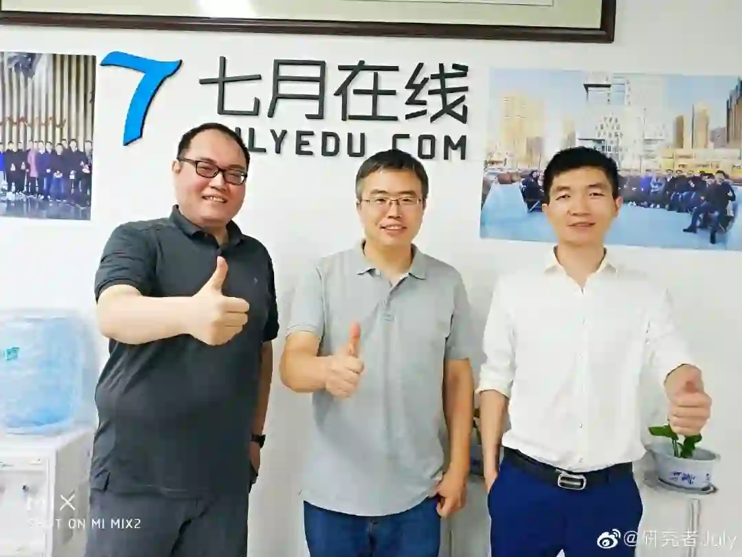 图左为七月在线AI Lab负责人兼科学家陈博士,中间就是大名鼎鼎的老师木,图右为校长July。
