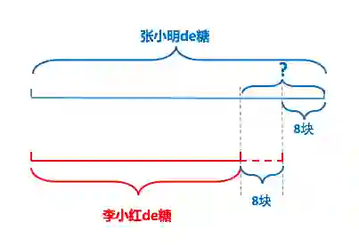 比如张小明有18颗糖,给了李小红8块,然后俩人糖就一样多了,这时候张小明和李小红应该各自有多少糖?那么李小红原先应该有多少颗糖?