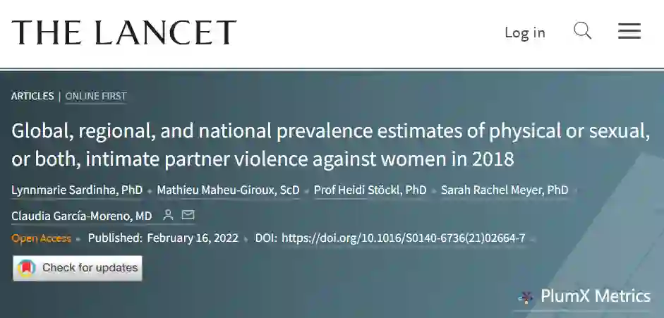 2022 年 2 月 16 日,《柳叶刀》发表了一项迄今为止最大规模的研究报告,揭示了全球女性遭受亲密伴侣暴力伤害的严峻形势。