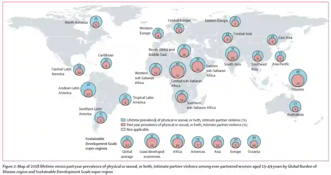 图 | 全球不同区域女性遭受暴力行为的发生率(来源:柳叶刀)