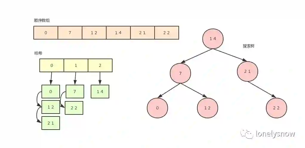 对于 MySQL 数据库而言,数据是存储在文件里的,而为了能够快速定位到某张表里的某条记录进行查询和修改,我们需要将这些数据以一定的数据结构进行存储,这个数据结构就是我们说的索引。回忆一下我们大学里学过的算法与数据结构,能够支持快速查找的数据结构有:顺序数组、哈希、搜索树。