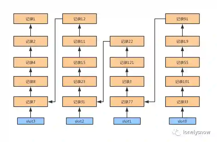 页目录里维护多个 slot ,一个 slot 包含多个行记录。每个 slot 占 2 个字节,记录这个 slot 里的行记录相对页初始位置的偏移量。由于索引只能定位到数据页,而定位到数据页内的行记录还需要在内存中进行二分查找,而这个二分查找就需要借助 slot 信息,先找到对应的 slot ,然后在 slot 内部通过数据行中记录头里的下一个记录地址进行遍历。每一个 slot 可以包含 4 到 8 个数据行。如果没有 slot 辅助,链表本身是无法进行二分查找的。