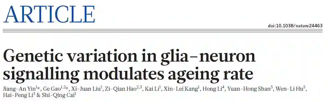 美东时间2017年11月8日,Nature杂志在线发表中国科学院神经科学研究所蔡时青研究员及其合作者关于健康老化遗传基础的重要发现,题为Genetic variation in glia-neuron signalling modulates ageing rate,揭示了衰老的分子机制,以及雄性青春长驻的秘密,请看知社的专题报道和文末的专家点评。