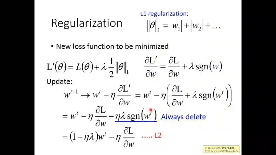 Regularization目的是为了发现一组参数它们不仅最小化损失函数并且它们的值接近于0