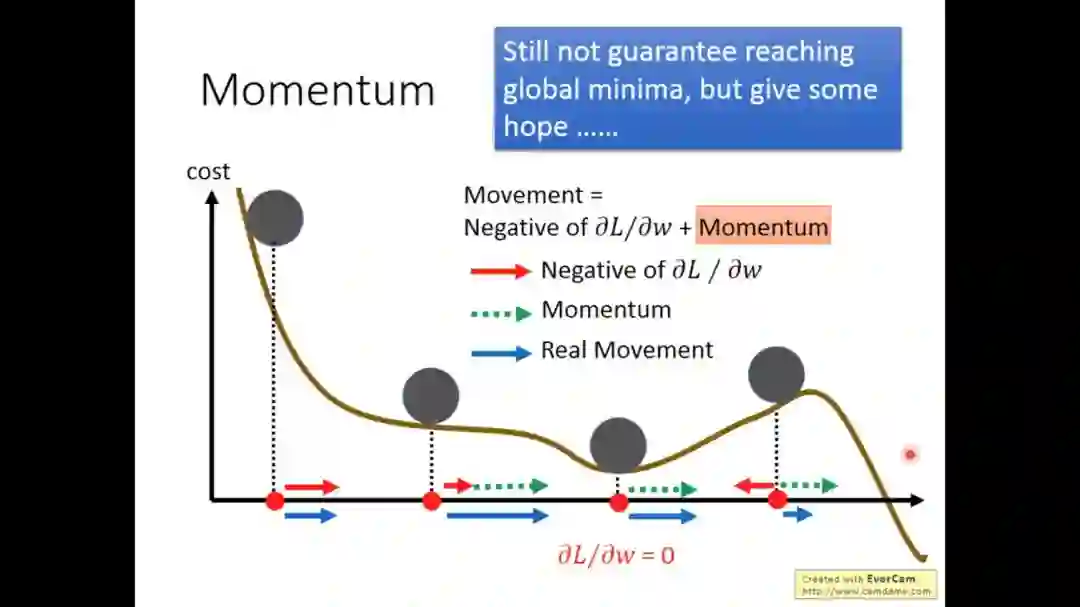 梯度下降时,更新参数不仅仅依赖于算出的梯度值,还依赖于之前更新参数的值