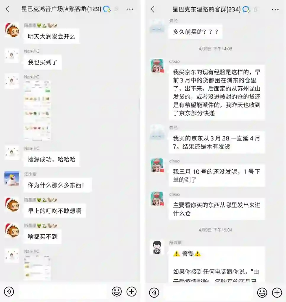 比如,上海疫情期间,大家在群内询问疫情、团购、发货等事宜,互帮互助。