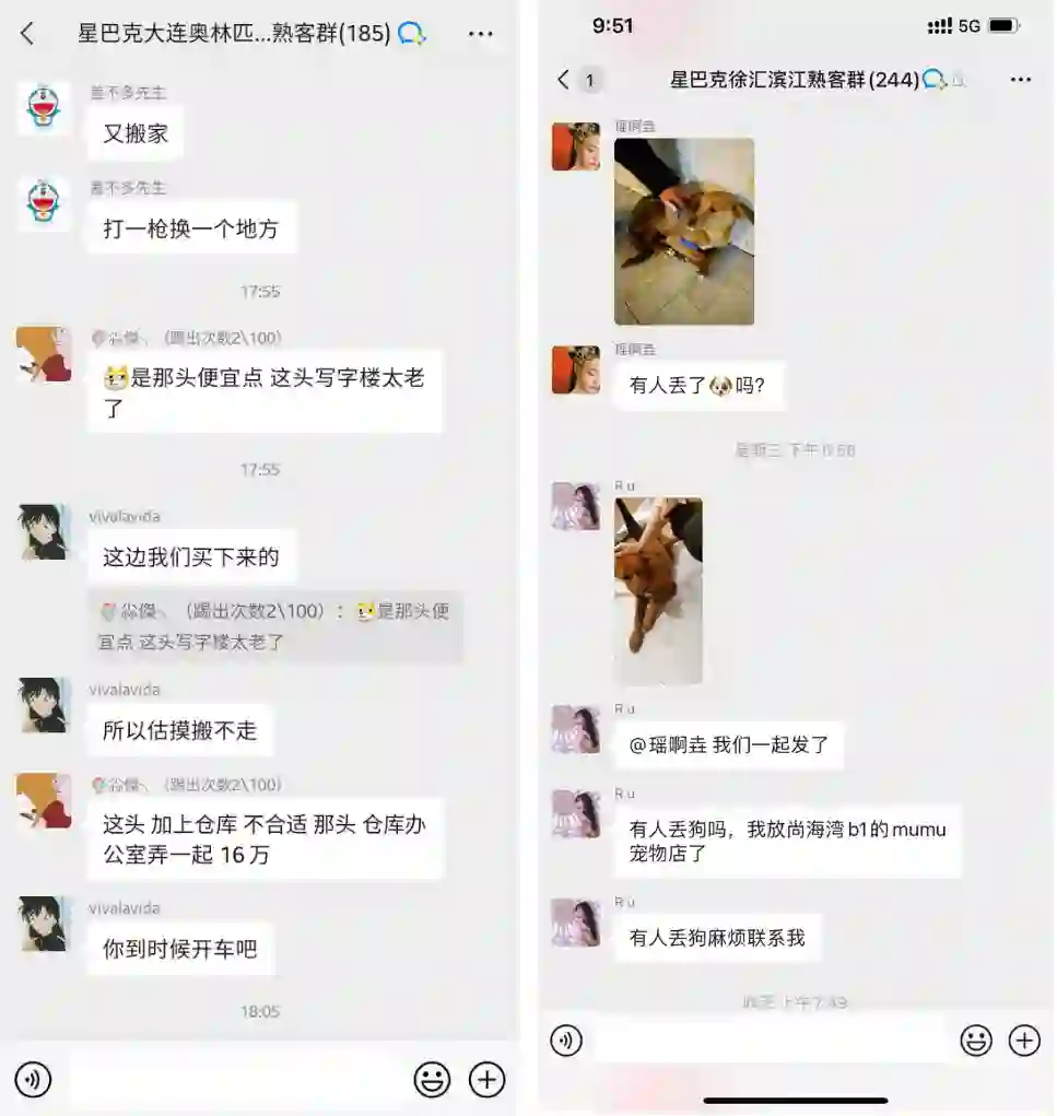 比如,看到走失的狗,在群内发布失物招领;交流工作、搬家等等。