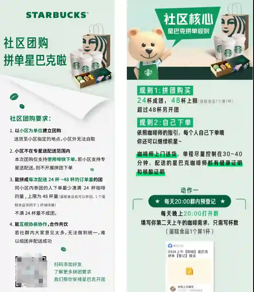 用户体量少的品牌,可由总部运营直接在群与用户互动。但对于星巴克这种千万级的用户量,企微群内互动由总部运营执行肯定不现实;由门店伙伴建群,总部的管控力就会变弱,因此就需要做职能上的区分。