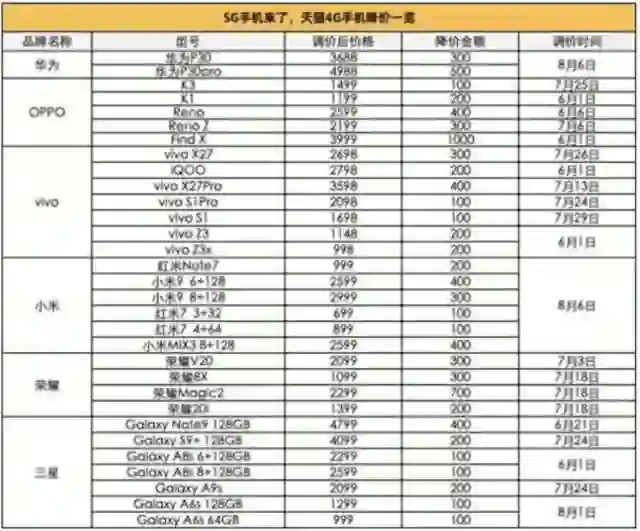 天猫平台统计显示,近期该平台上有超过30款4G手机启动降价,华为主力机型P30Pro售价直降500元,小米9、vivoX27、Note9等热门机型下调100-400元,OPPOFindX下调1000元。