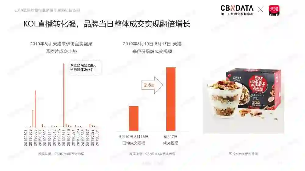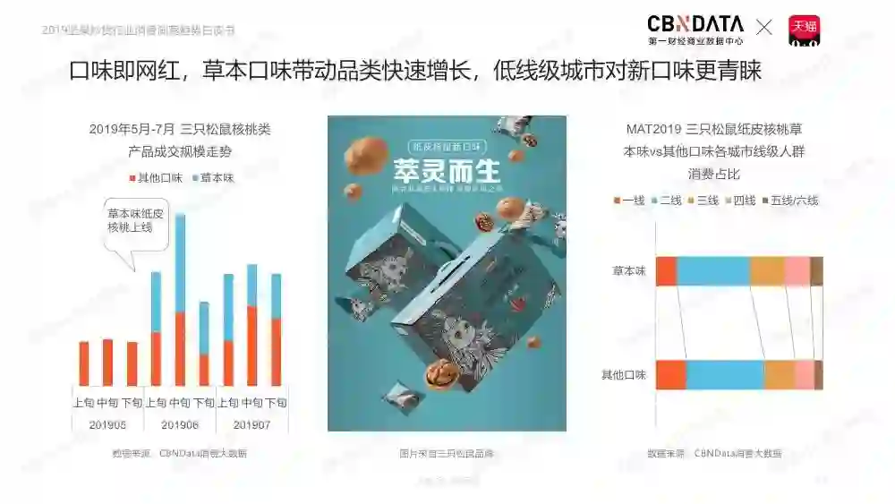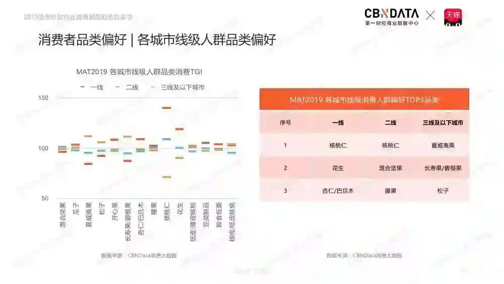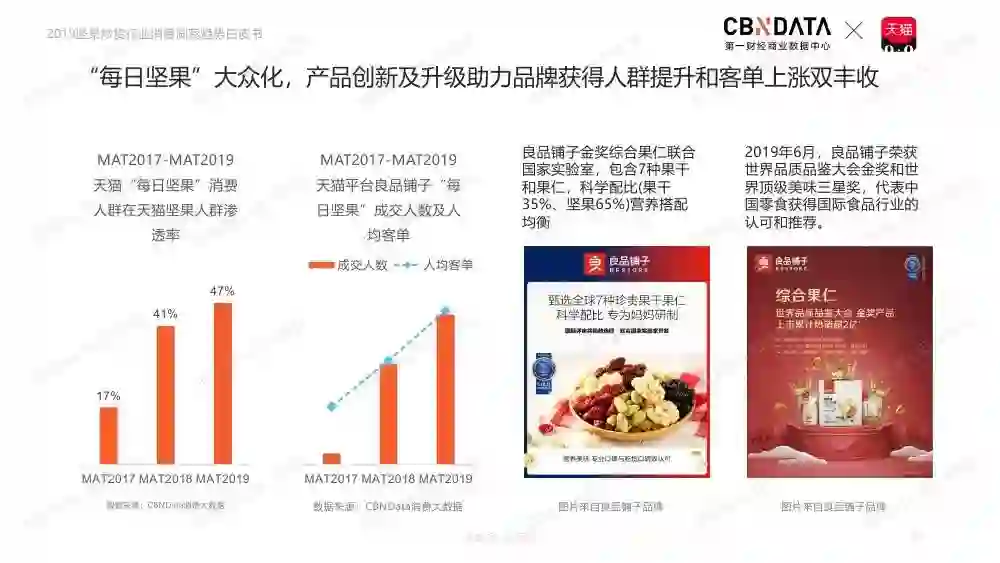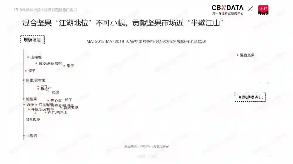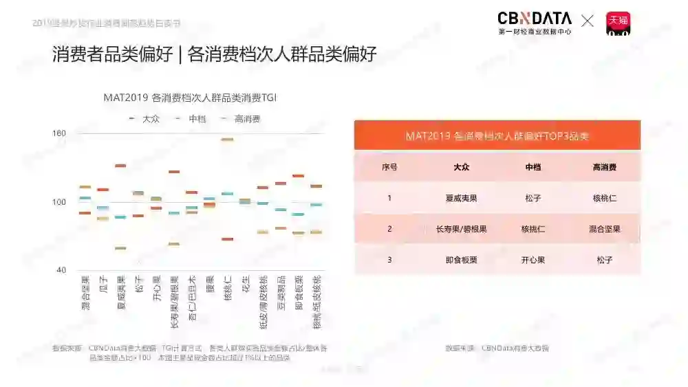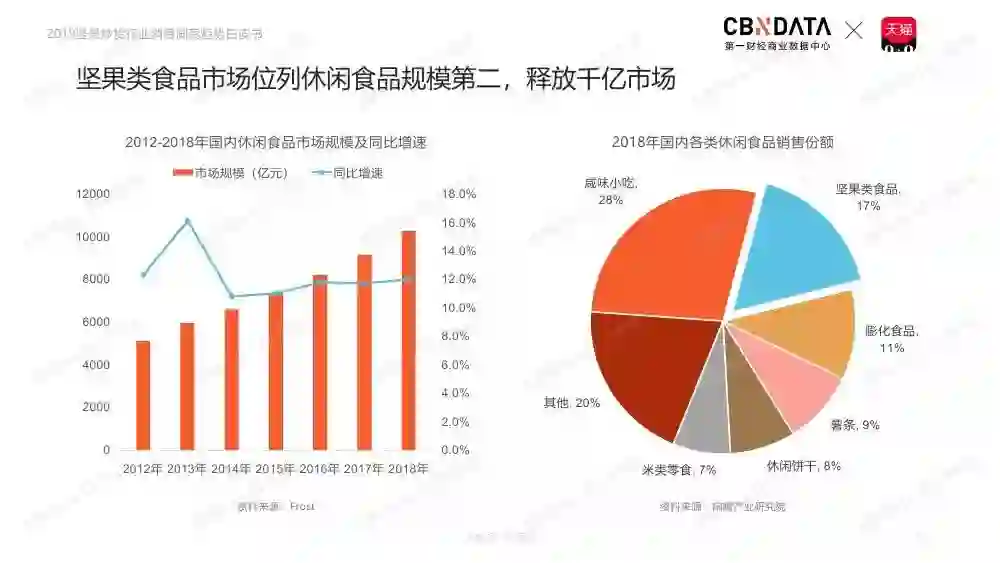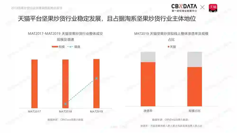 坚果类食品市场位列休闲食品规模第二,释放千亿市场。天猫平台坚果炒货行业稳定发展,占据淘系坚果炒货行业主体地位。