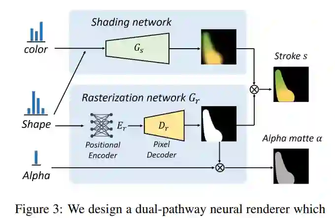 。由于典型向量渲染器不可微分,因此他们设计了一种新型的神经渲染器,它能够模仿向量渲染器的行为,然后将笔画预测设计成参数搜索过程,以最大化输入与渲染输出之间的相似性。此外,研究者探索了参数搜索的零梯度问题,并提出从最优运输角度解决该问题。
