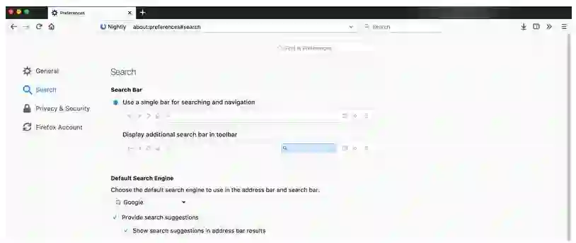 新的 Firefox 安装将会禁用旧版 Firefox 用户界面右上角出现的搜索小部件,这是浏览器旧界面的标志性部分。不过不要担心,用户可以从设置面板重新启用旧的搜索小部件。