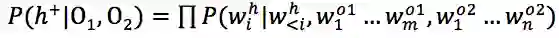 归纳(归因)自然语言生成:αNLG是在给出两个观测值 O1 和 O2 的情况下生成有效假设 h^+ 的任务,形式上该任务需要最大化 P(h+ | O1, O2 )。