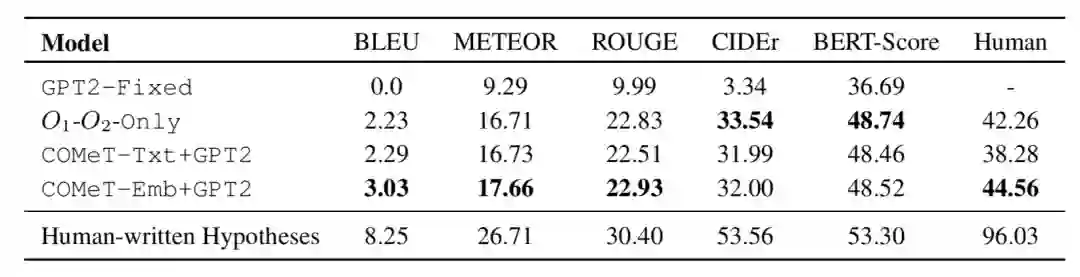 表2 生成模型在ART测试集上的性能。除GPT2-Fixed外,所有型号均在ART上进行了微调。