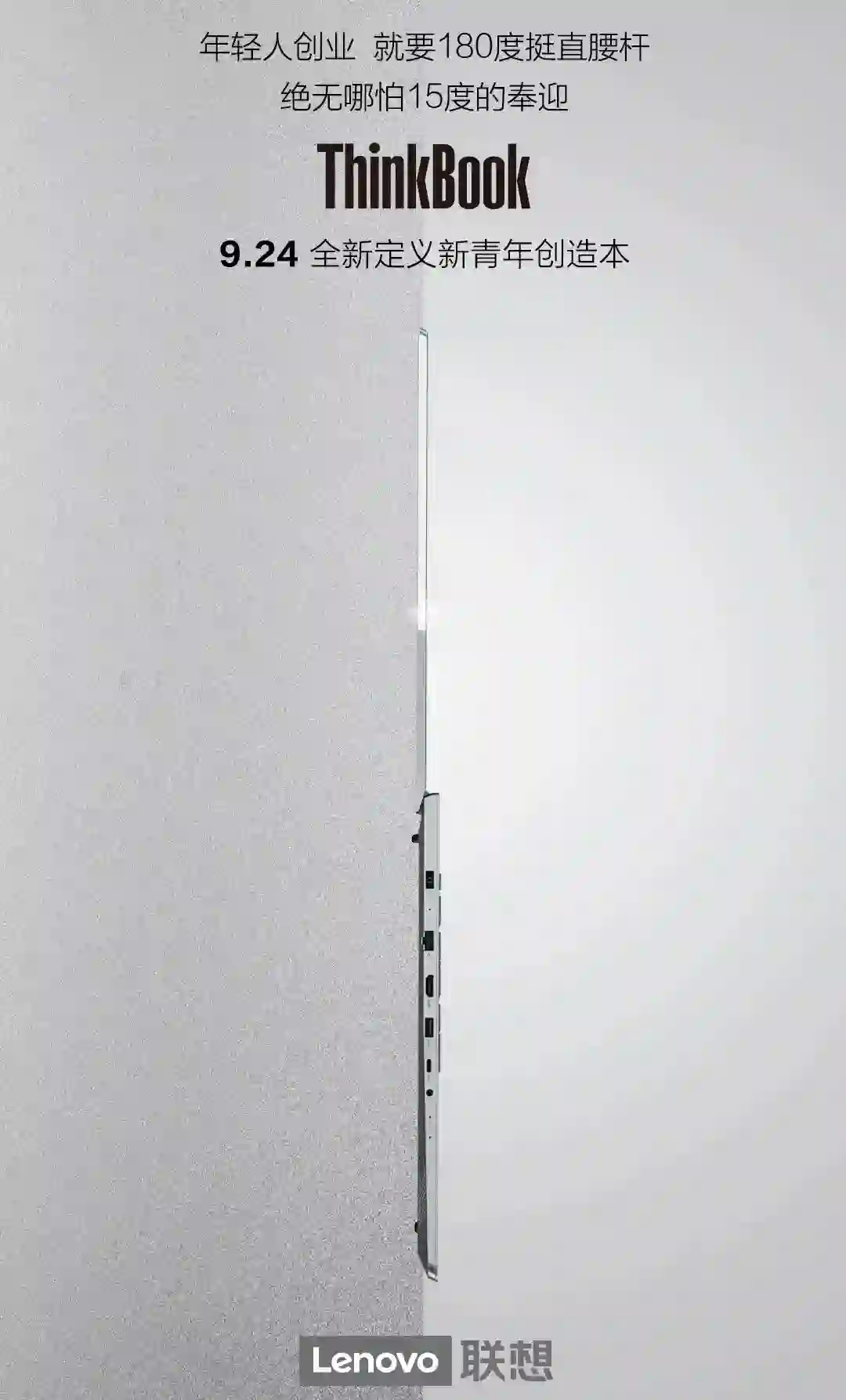 近日,ThinkBook官方宣布,将于9月24日发布一款新青年创造本,最大卖点是支持180度开合设计。