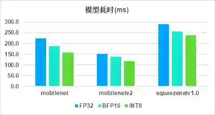 低精度计算的运用对TNN的性能提升发挥了重要作用。在神经网络计算中,浮点精度在许多研究和业务落地成果上都被证明存在一定冗余,而在计算、内存资源都极为紧张的移动端,消除这部分冗余极为必要。TNN引入了INT8、FP16、 BFP16等多种计算低精度的支持,相比大部分仅提供INT8支持的框架,不仅能灵活适配不同场景,还让计算性能大大提升。TNN通过采用8bit整数代替float进行计算和存储,模型尺寸和内存消耗均减少至1/4,在计算性能上提升50%以上。同时引入arm平台BFP16的支持,相比浮点模型,BFP16使模型尺寸、内存消耗减少50%,在中低端机上的性能也提升约20%。骁龙615平台实测: