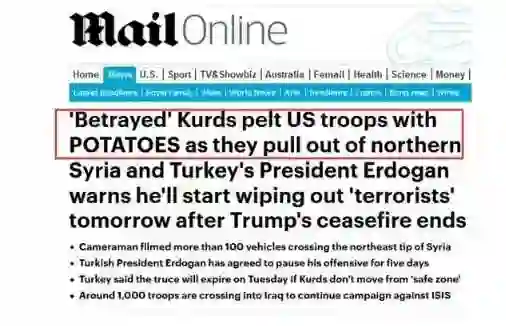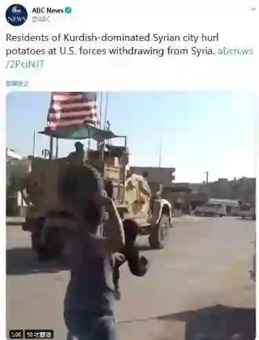 多家外媒10月21日曝光了一段美军从叙利亚撤离并前往伊拉克的视频,内容为:库尔德人所控制的城市民众拿土豆砸美军军车。
