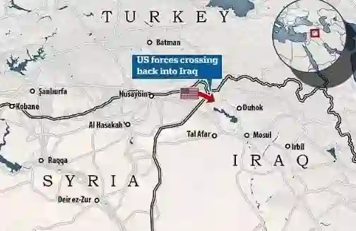 美军穿过叙利亚与伊拉克边境位置示意 图源:《每日邮报》