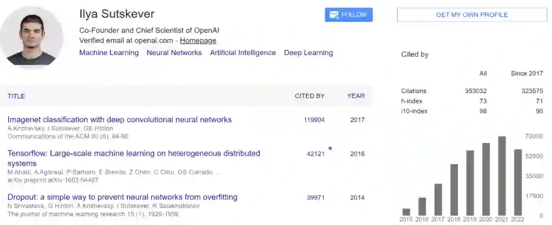 Ilya Sutskever 为该论文的作者之一,也是 Hinton 的博士生,为 OpenAI 联合创始人兼首席科学家。此前,他还在斯坦福大学 Andrew Ng 的团队做博士后。