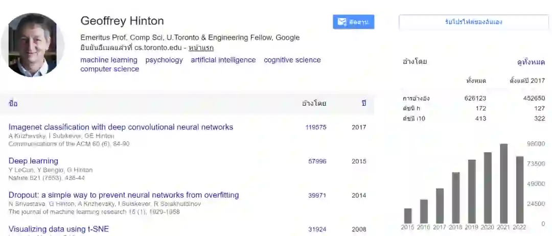 最后一位作者为深度学习三巨头之一的 Geoffrey E. Hinton ,以其在类神经网路方面的贡献闻名。Hinton 是反向传播算法和对比散度算法的发明人之一,也是深度学习的积极推动者,被誉为深度学习之父,于 2018 年的被授予图灵奖。