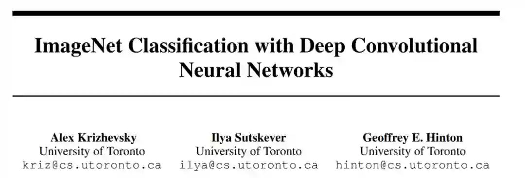 这篇论文发表于 2012 年,论文作者是当时来自多伦多大学的 Alex Krizhevsky 、 Ilya Sutskever 以及 Geoffrey E. Hinton 。