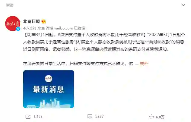 微信支付宝个人收款码将不能用于经营收款