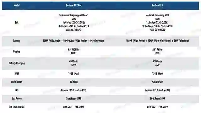 据 91mobiles 此前报道,realme GT2 Pro 预计将配备一块 6.51 英寸 FHD+Super AMOLED 屏幕,后置为三摄设计,包括一颗 1.08 亿像素主摄、800 万超广角镜头以及一颗 500 万镜头(具体用途未知)。realme GT2 Pro 内置 5000mAh 容量电池,支持 125W 快充,搭载基于 Android 12 打造的 realme UI 3.0。该机目前正在研发中,并预计在明年第一季度亮相。