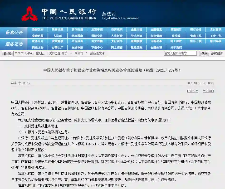 据悉,此举是为了避免不法分子利用“跑分平台”,以高额收益吸引大量人员使用个人静态收款条码与赌客“点对点”线上远程转移赌资,将赌资分拆隐藏于众多正常交易场景。并且表示,长远来看,《中国人民银行关于加强支付受理终端及相关业务管理的通知(银发〔2021〕259号)》关于规范个人收款码的相关要求将进一步提升对个人经营者和小微商户的收单服务质量。