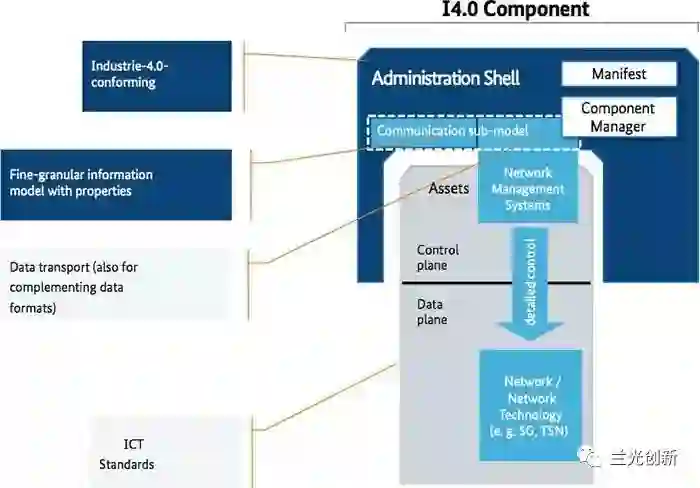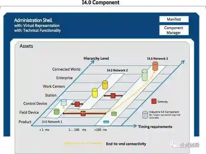 按照德国工业 4.0 的顶层设计的思路明显可见,工业4.0 的基础是在工业生产价值链各个环节所发生的所有实例的全部信息,都应该通过面向应用的联网,构成信息的高可用性。信息的可用性越高,价值增值的可能性越大。这表示RAMI4.0 参考模型的通信层需要确保不同工业 4.0 基本单元之间及时、可靠、安全的信息传输。同时,这些通信技术也必须完全支持 RAMI4.0 参考模型的递阶(hierarchy)维度各层级内和各层级间的通信要求。由此可以推断,相关的通信系统(包括商用的技术、网络和协议)也是工业 4.0 中的关键资产。为了使各种工业 4.0 的基本单元能进行符合工业4.0 要求的端对端通信,它们也需要一个管理壳。